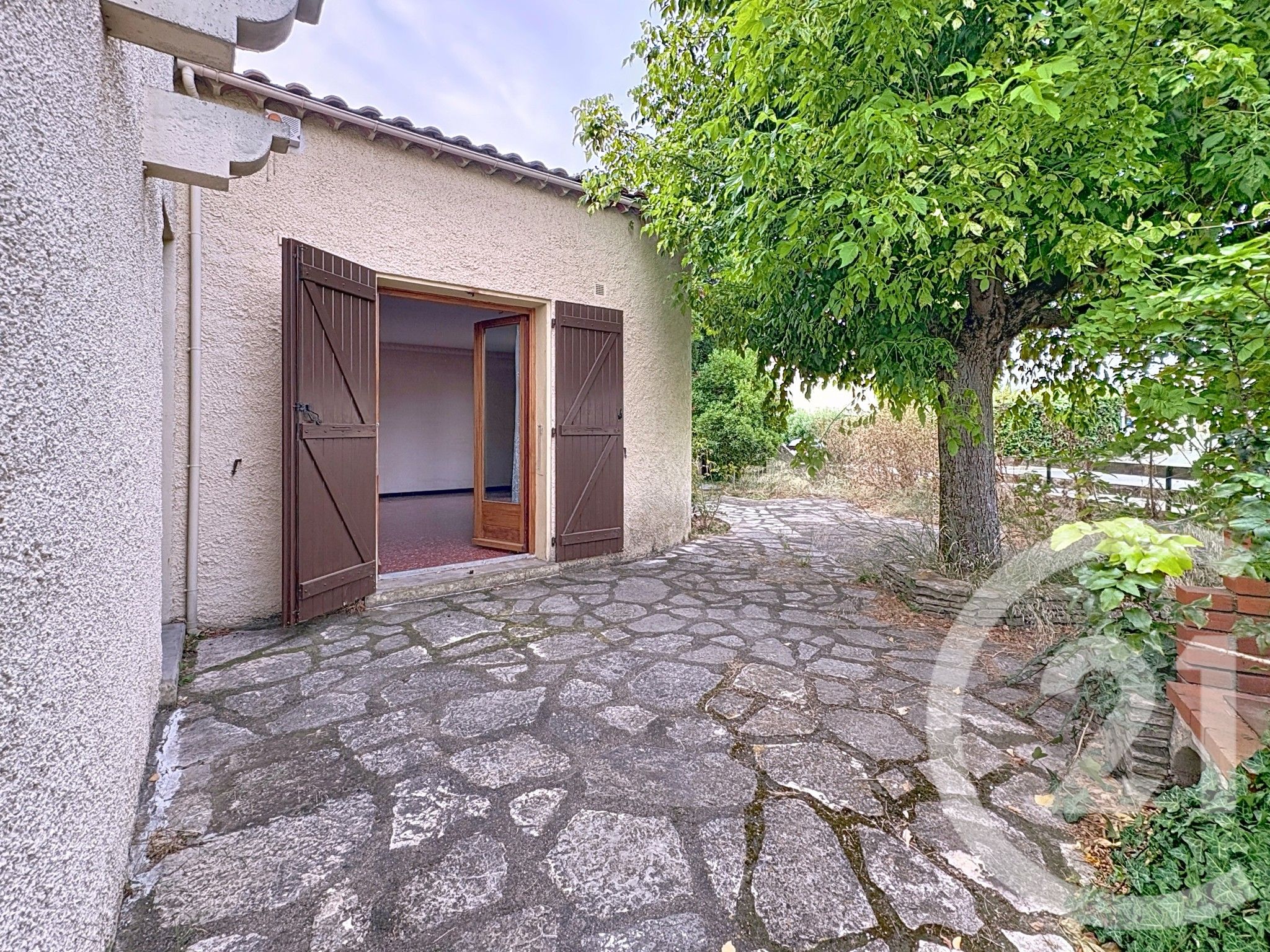 Le jardin arboré, qui entoure la maison, offre de nombreuses possibilités d'aménagement : coin repas, potager, espace détente ou aire de jeux pour les enfants.